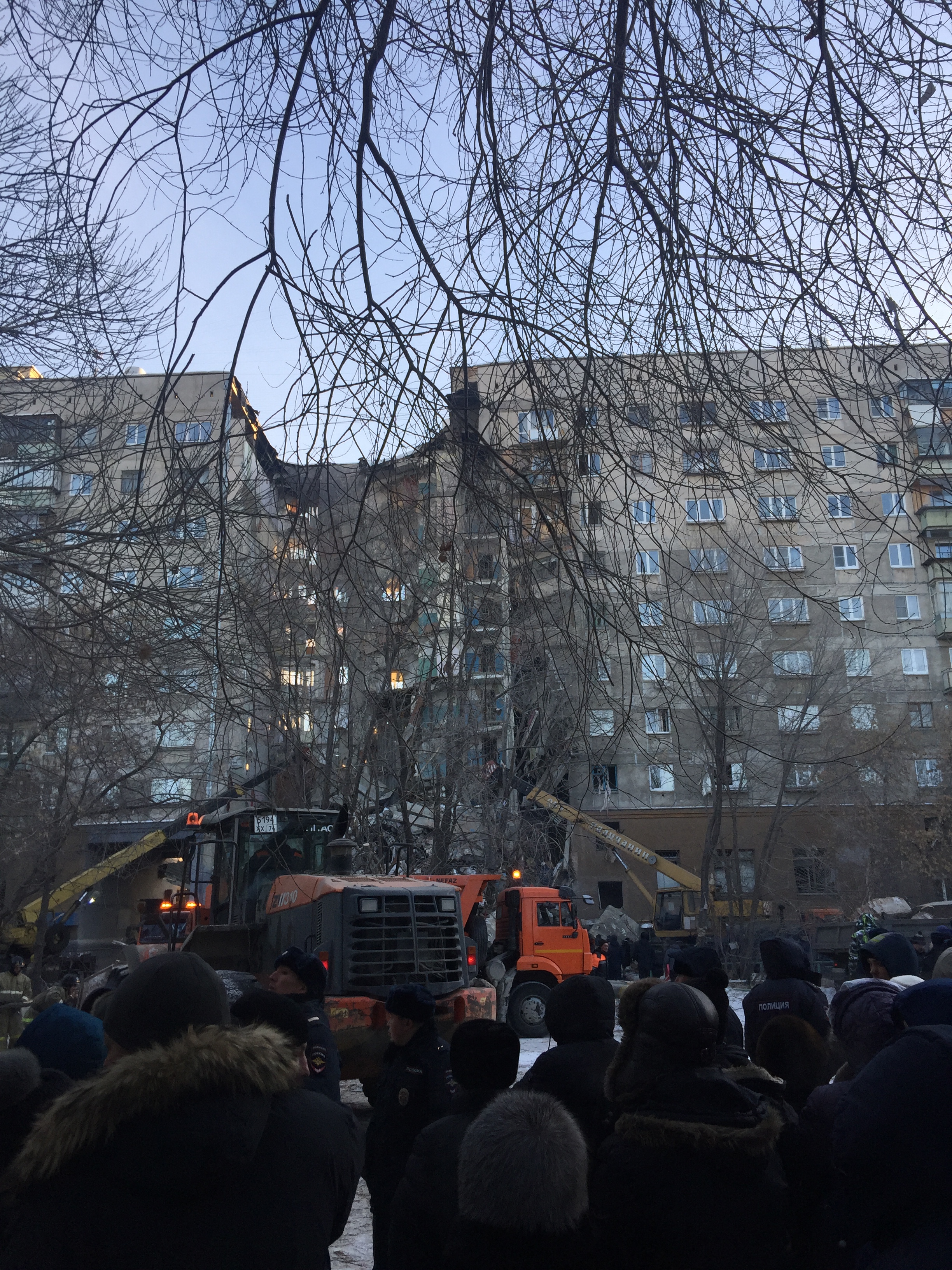 Других жителей города разбудил сигнал мобильного телефона. В 8:12 пришло экстренное оповещение от МЧС, где говорилось, что в Магнитогорске по адресу: проспект Карла Маркса, дом 164, произошло обрушение подъезда. Затем еще одно сообщение, на этот раз от волонтеров о помощи: требовались крепкие мужчины для разбора завалов. Через 10 минут корреспондент Радио Свобода была на месте.