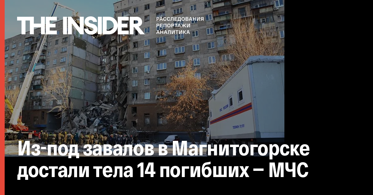 Спасатели достали из-под завалов дома в Магнитогорске тела 14 погибших, сообщает МЧС. По-прежнему 27 человек остаются пропавшими без вести.
