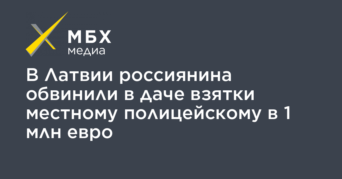 Генеральная прокуратура Латвии предъявила обвинение россиянину, который дал взятку в 1 млн евро полицейскому, об этом сообщает ТАСС со ссылкой на агентство LETA.