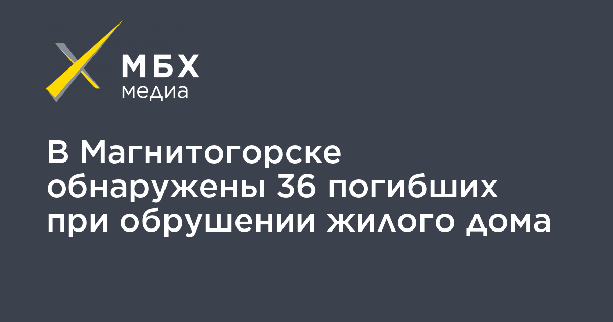 В Магнитогорске при обрушении жилого дома, где прогремел взрыв, по последним данным, погибли 36 человек – их тела найдены под завалами, об этом сообщает «Интерфакс» со ссылкой на МЧС.