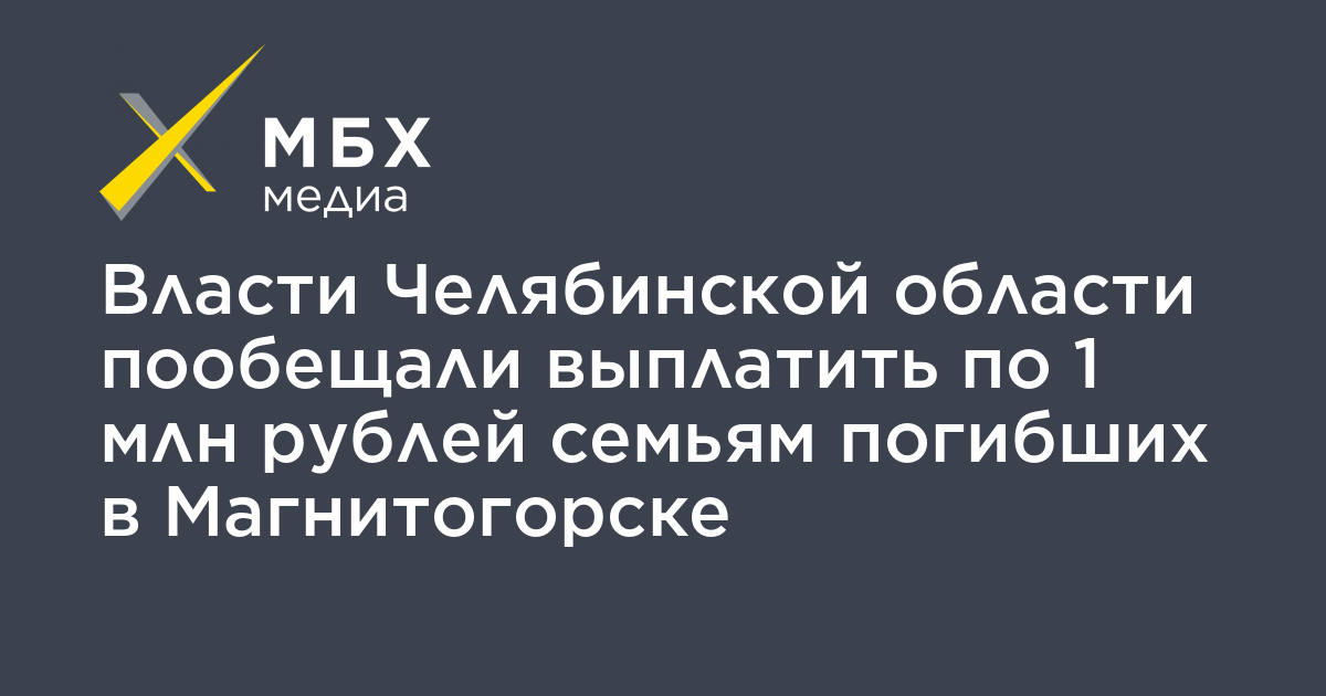Власти Челябинской области пообещали выплатить по 1 млн рублей семьям погибших в Магнитогорске