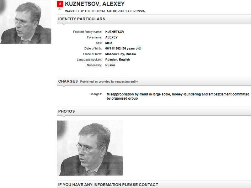 В России заочное обвинение Кузнецову в особо крупном мошенничестве и "отмывании" средств было предъявлено в июне 2010 года. В 2012 году Алексей Кузнецов вместе со своей женой Жанной Булах был объявлен сначала в федеральный, а затем в международный розыск.