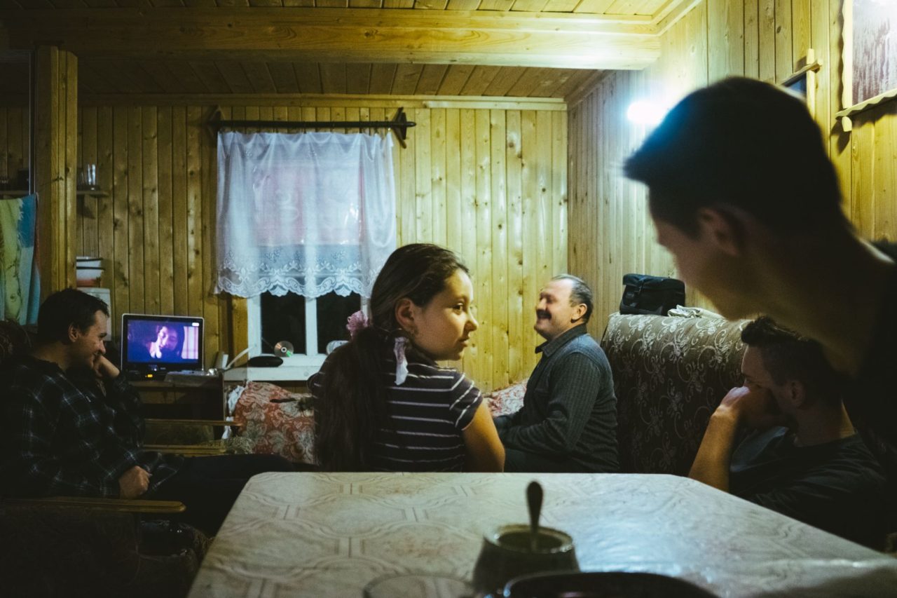 Слева направо: Коля, Маша, Николай, Сережа и Антон смотрят фильмФото: Станислава Новгородцева для ТД Двое старших сыновей, Иван и Вова, выросли и уехали работать в Москву. В деревне появляются нечасто. Ксюша и Надя уже третий год учатся во Ржеве на парикмахеров. Сергей и Антон после девятого класса осенью пошли учиться на сварщиков. Выбор профессий во Ржеве невелик, а учить детей далеко от дома Николаю не по карману. Девочки хорошо учатся и получают гигантскую стипендию — 452 рубля в месяц.