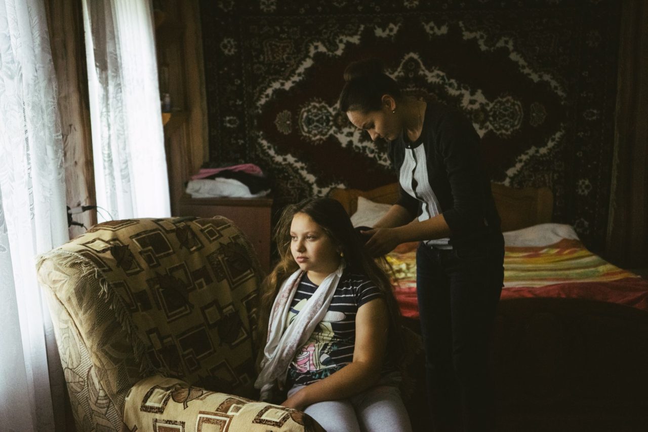 Ксюша плетет косы МашеФото: Станислава Новгородцева для ТД Пропустив три недели, дети вернулись в школу. Сначала школу окончил Вова, потом Надя и Ксюша. Каждый год Николаю приходилось биться за школьный автобус и право детей учиться в школе и жить дома, в семье. Смерть мамы их еще больше объединила. Весной 2018 года Сергей и Антон окончили девять классов и поступили в колледж. В семье осталась только одна школьница — младшенькая Маша. Николаю еще в мае сказали, что рассчитывать в следующем учебном году на автобус бессмысленно: за одним ребенком точно никто заезжать не будет. Стоит уже перестать сопротивляться и отдать девочку в интернат на пятидневку. Мол, ничего там с ней не случится и косички будут заплетать не хуже вашего.