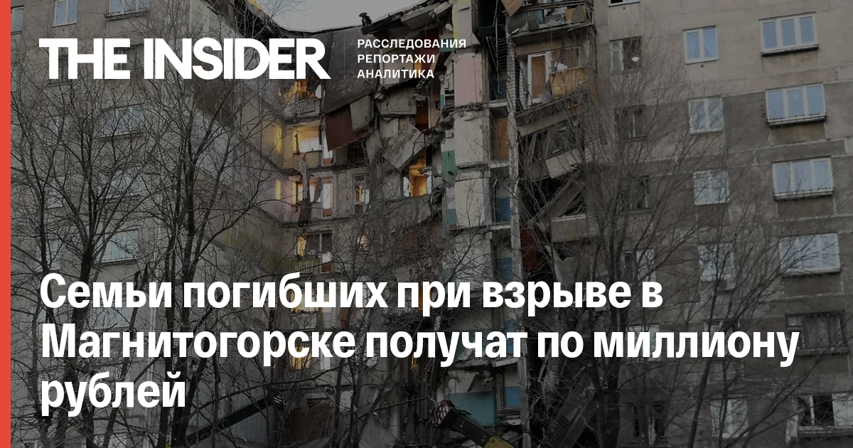 Власти Челябинской области выплатят семьям погибших при взрыве газа в подъезде дома в Магнитогорске по 1 млн руб. Об этом сообщает ТАСС со ссылкой на пресс-службу губернатора.