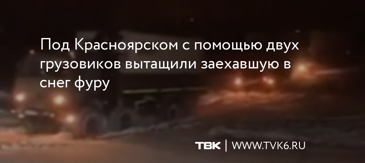 Под Красноярском с помощью двух грузовиков вытащили заехавшую в снег фуру