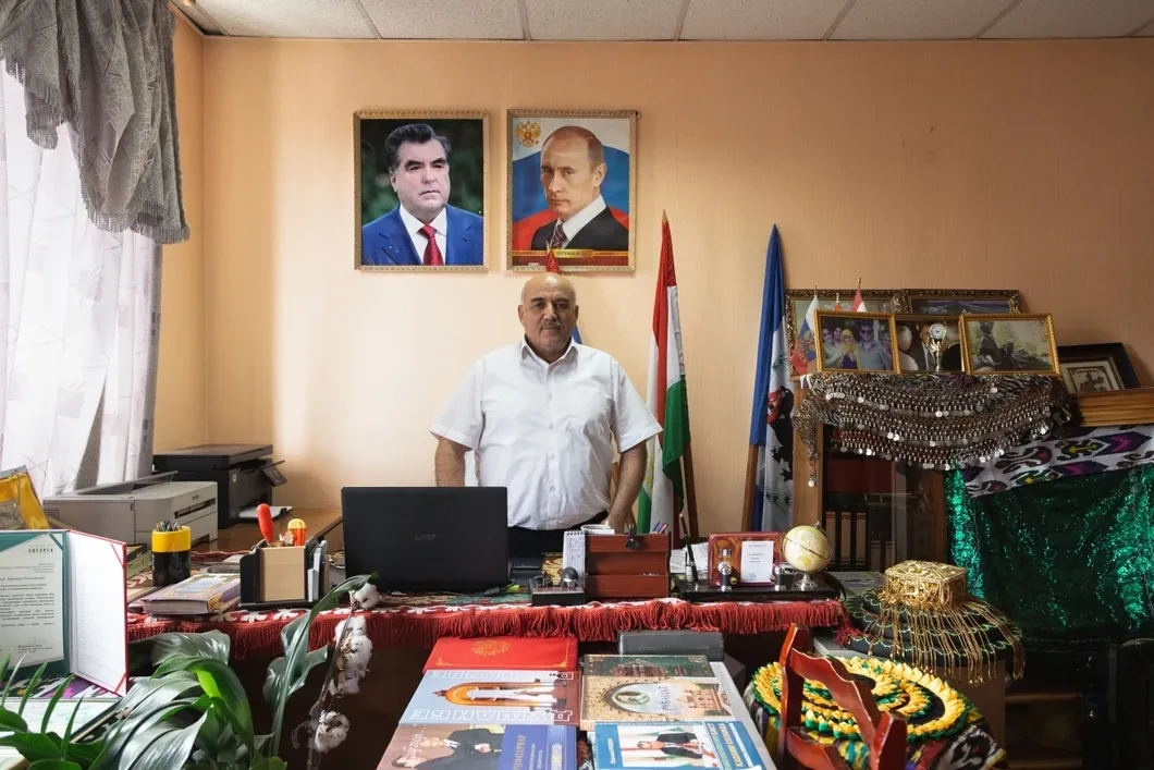 В Иркутске подобные центры расположены в неприметном здании у Центрального рынка. В первом кабинете посетителя встречают портреты президента Таджикистана Эмомали Рахмона и президента России Владимира Путина. Из-за стола, пестрящего тюбетейками, поделками из хлопка и вышитыми тканями, встает Муриват Маликшоев, основатель Таджикского НКЦ. В Иркутск он приехал в начале 1990-х в статусе официального торгового представителя. Многолетний стаж работы в государственных структурах заметен во время разговора, — Маликшоев не забывает вовремя упоминать нужные фамилии. После долгого описания фестивалей плова и хлопка, Навруза и спортивных состязаний, он нехотя переходит к рассказу о жизни граждан Таджикистана в Сибири. Радужная картина «дружбы народов» омрачается, только когда речь заходит о работе миграционных служб: