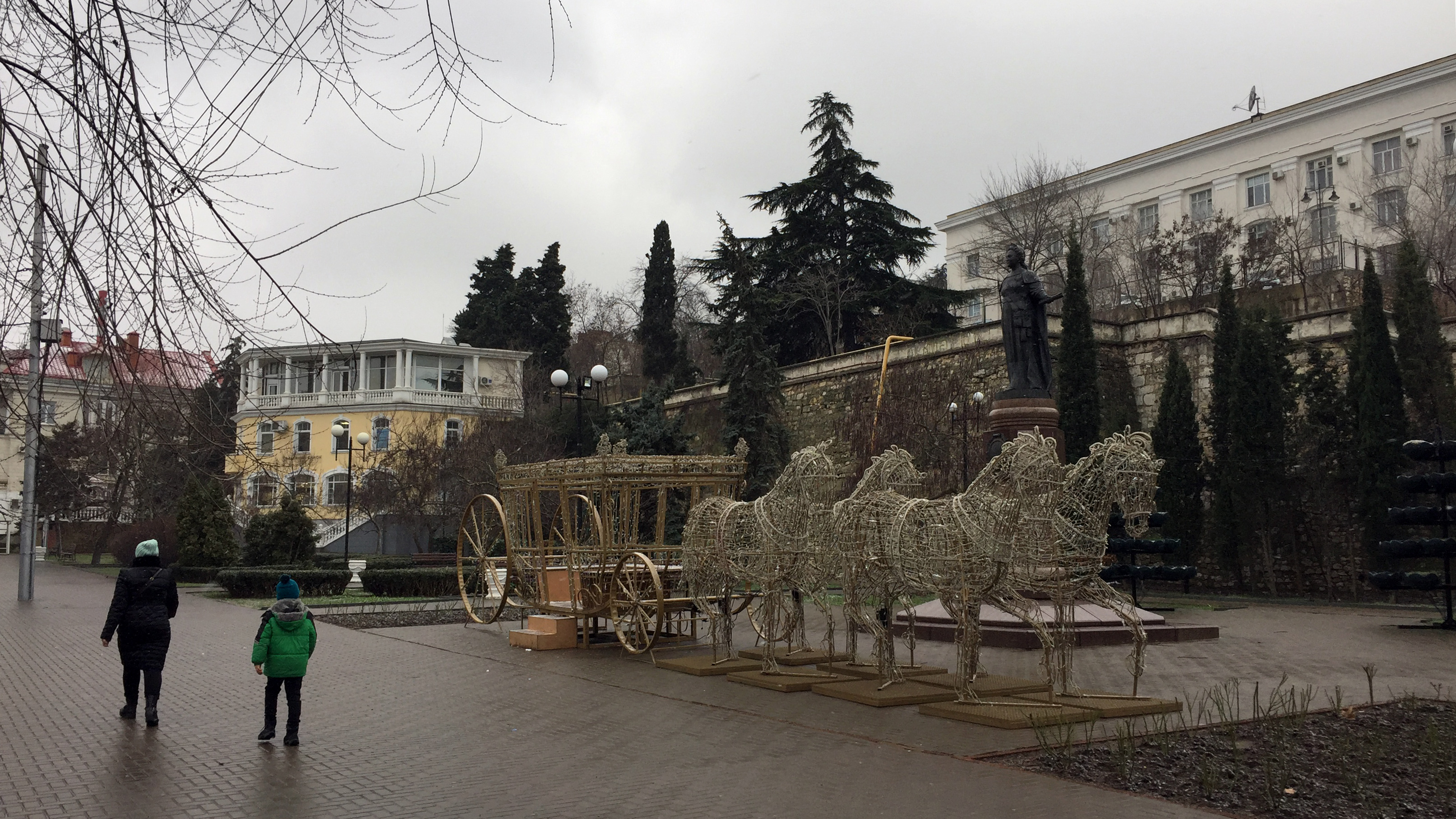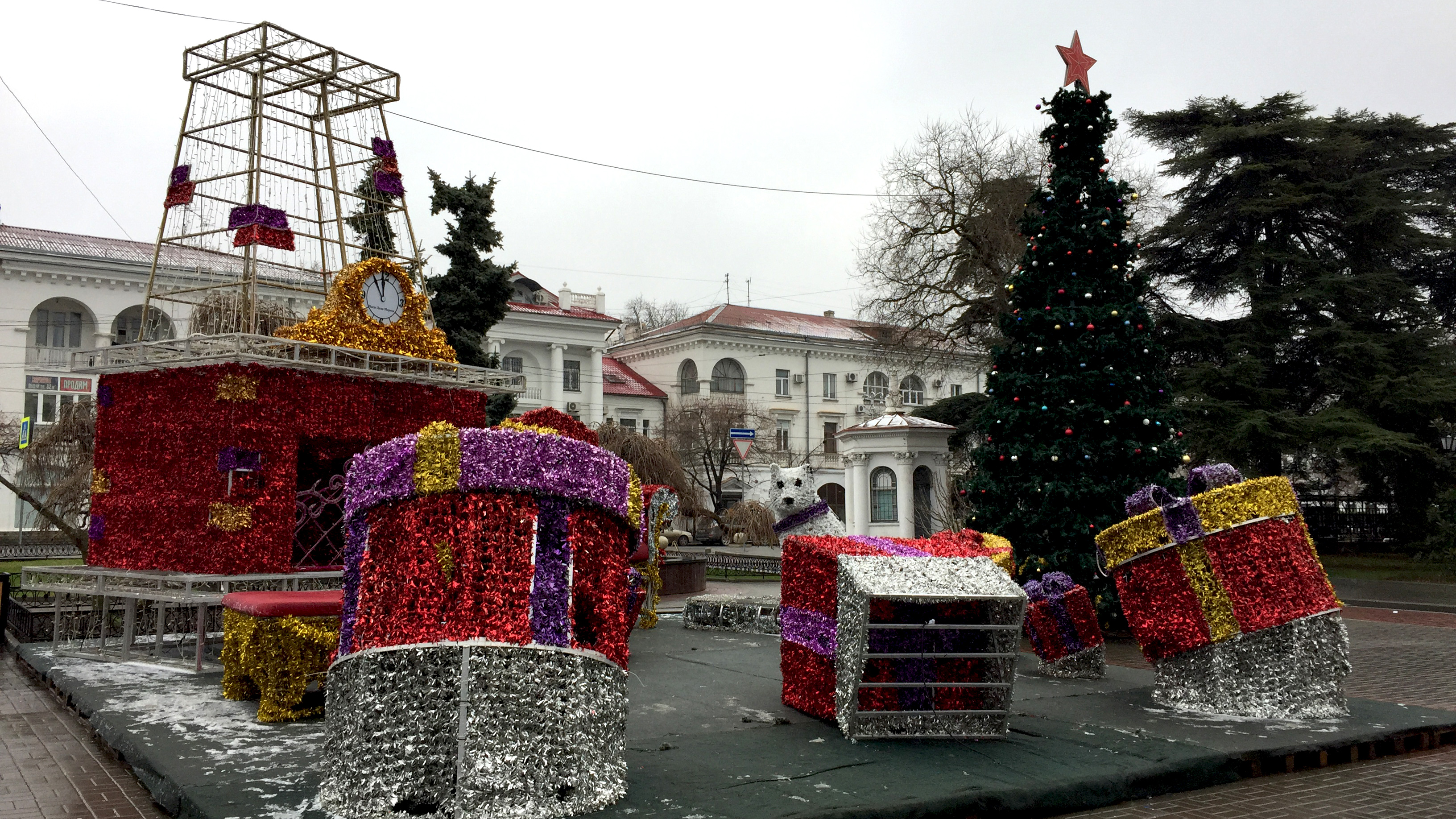 Самым успешным в создании новогодней атмосферы в этот раз можно назвать Севастополь. В центре города присутствует и иллюминация, и украшенные елки, и различные праздничные скульптуры.