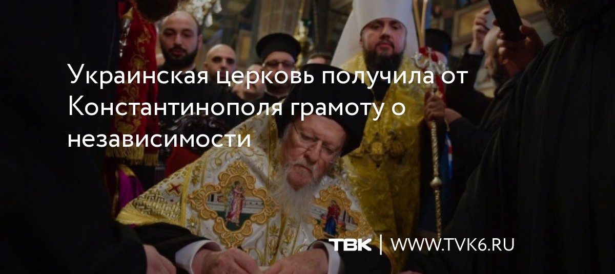 Православная церковь Украины (ПЦУ – в 2018 г. так было решено называть новую религиозную структуру) получила грамоту о независимости. Томос об автокефалии подписал патриарх Варфоломей.