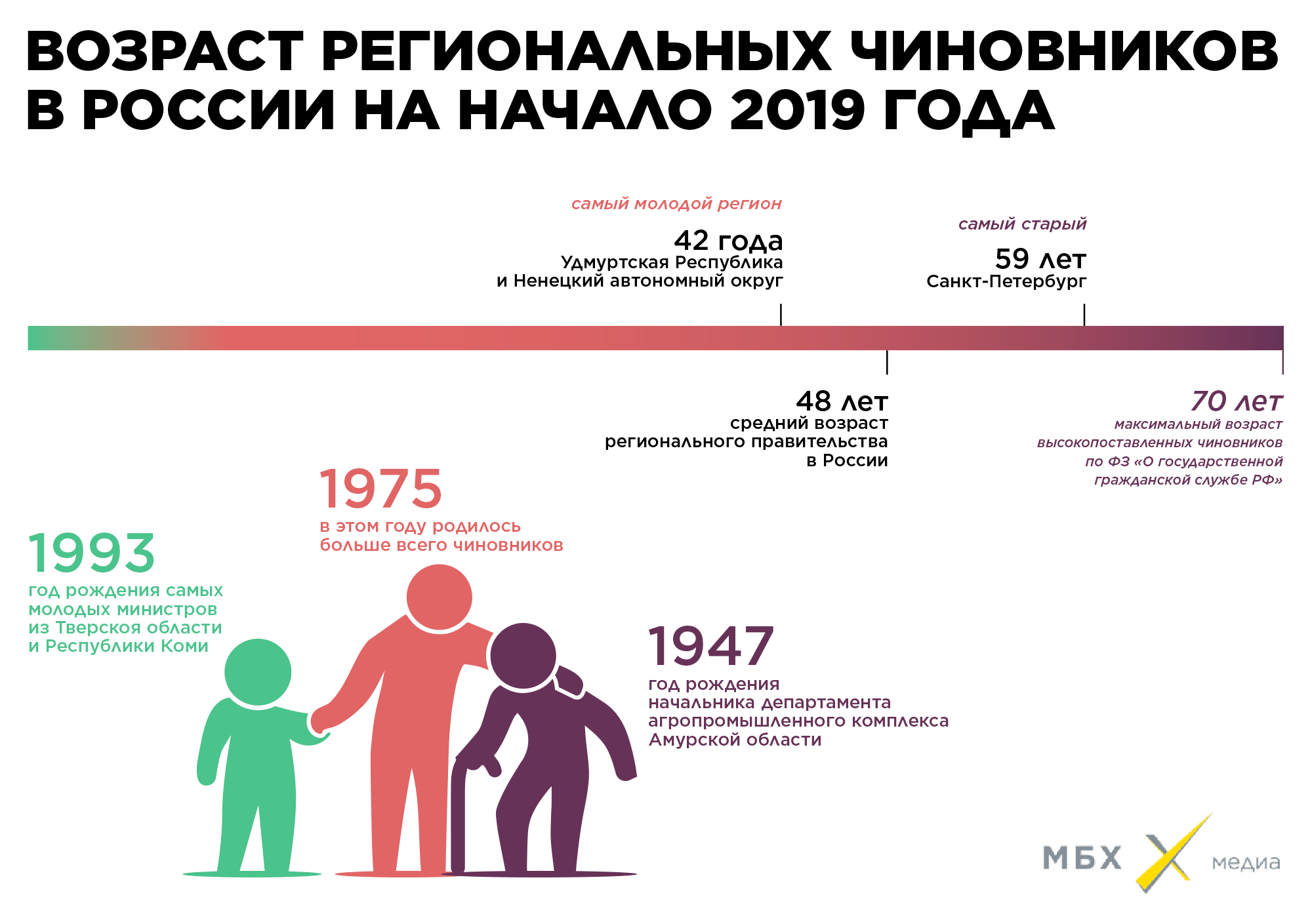 Всего в составах правительств 85 субъектов Российской Федерации работают больше тысячи человек. Это главы регионов, министры или главы управлений и департаментов и заместители главы региона, которые координируют работу между разными департаментами. Средний возраст члена регионального правительства в России — 48 лет.