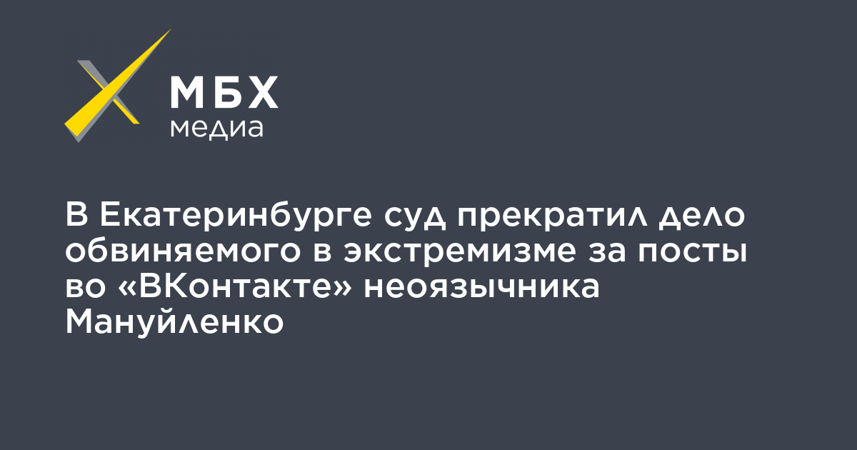 В Екатеринбурге суд прекратил уголовное дело в отношении лидера неоязыческой общины «Схорон еж Славен» Владимира Серге (Мануйленко), которого обвиняли в экстремизме за посты во «ВКонтакте», об этом «МБХ медиа» рассказал адвокат международной правозащитной группы «Агора» Алексей Бушмаков.
