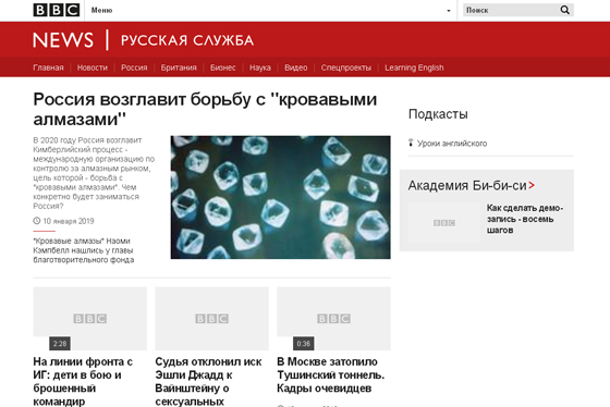 Сегодня, 10 января, Роскомнадзор объявил, что в результате проверки интернет-ресурсов BBC «выявлены материалы, транслирующие идеологические установки международных террористических организаций».