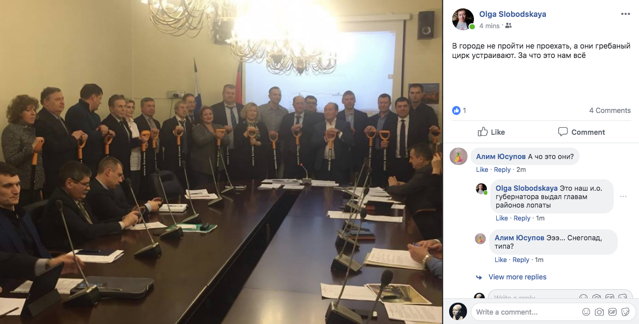 Между тем, поручение Беглова было выполнено уже на следующий день. 10 января петербургские чиновники действительно получили лопаты с фамилией губернатора. Замглавы Выборгского района Петербурга Арина Артемова в тот же день вышла с «лопатой Беглова» на уборку снега в одном из дворов.