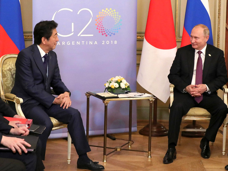 "Дональд Трамп, как помним, отказался от встречи с российским лидером на саммите G-20 в Сингапуре в ноябре прошлого года. Явно желая сгладить унижение от этого отказа и создать впечатление успешной внешней политики, тогда же в Сингапуре, на переговорах с Абэ, Путин и пообещал активизировать российско-японские контакты о заключении мирного договора на основе Совместной декларации от 19 октября 1956 года.
