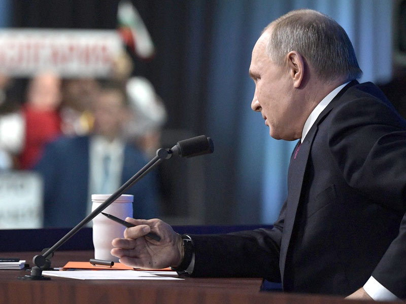 Пресс-конференция В. Путина, декабрь 2018 / kremlin.ruДля ответа на вопрос по видеосвязи подключились министр энергетики Александр Новак и вице-премьер, курирующий топливно-энергетический комплекс, Дмитрий Козак. Последний «пригрозил» нефтяникам повышением экспортных пошлин. Вице-премьер пообещал, что соответствующий законопроект, дающий правительству возможность оперативно это сделать, будет внесён в Госдуму в ближайшее время, и власти непременно ею воспользуются в том случае, если нефтяники не сдержат своё обещание.