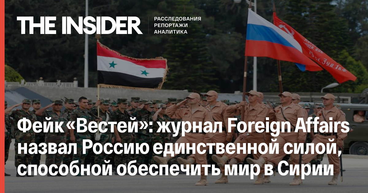 Фейк «Вестей»: журнал Foreign Affairs назвал Россию единственной силой, способной обеспечить мир в Сирии