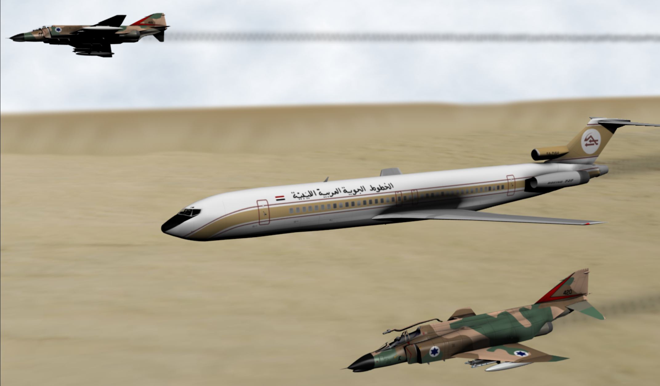 При подлёте к Каиру самолёт шёл над сплошной облачностью, к тому же ниже бушевала пыльная буря, что вынуждало пилотов ориентироваться только по приборам. На высоте 6000 метров ливийский самолет пересёк Суэцкий канал и оказался на территории Синайского полуострова, который в то время контролировал Израиль. Его засекли радары, и в воздух поднялись два истребителя F-4E Phantom II ВВС Израиля.