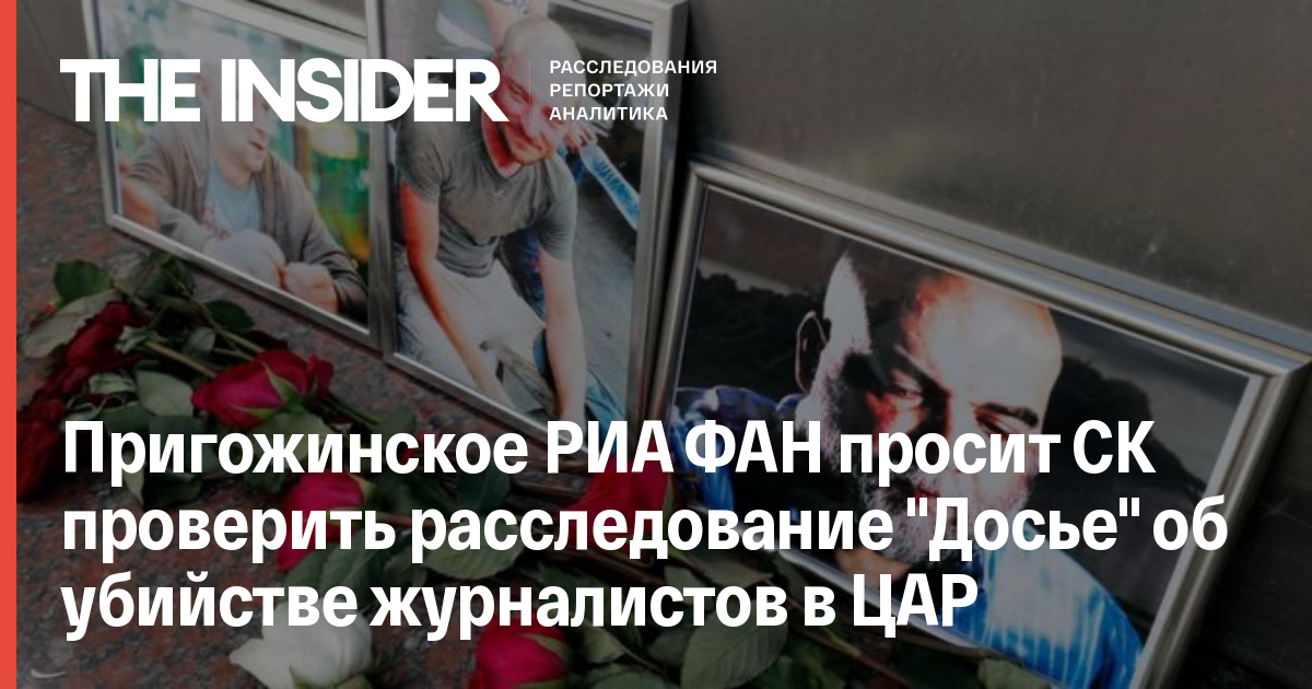 Пригожинское РИА ФАН просит СК проверить расследование "Досье" об убийстве журналистов в ЦАР