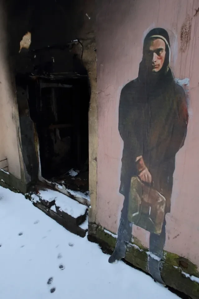 Граффити с изображением художника-акциониста Петра Павленского на стене дома №141 по Лиговскому проспекту. Фото: Замир Усманов / ТАСС