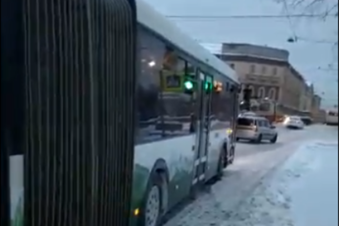 В Петербурге автобус не мог выехать с остановки из-за неубранного снега