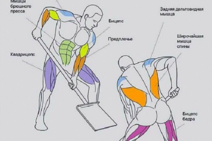Комитет по благоустройству Петербурга в своей группе во «ВКонтакте» рассказал с помощью инфографики о пользе работы широкой лопатой. На картинке обозначены группы мышц, которые задействуются таким образом.
