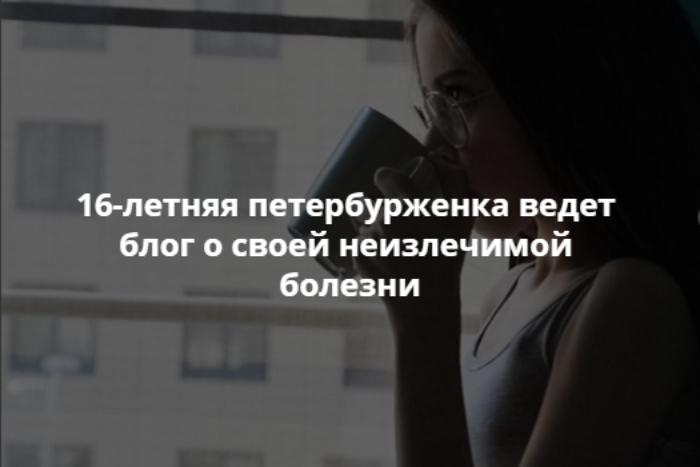 «Афиша Daily» опубликовала интервью с 16-летней петербурженкой Тасей Шеремет, которая болеет муковисцидозом — неизлечимой болезнью, при которой нарушаются функции органов дыхания, а иногда и желудочно-кишечного тракта. Школьница ведет блог, где рассказывает о болезни, а также рассуждает о феминизме и сексуальном просвещении среди школьников.
