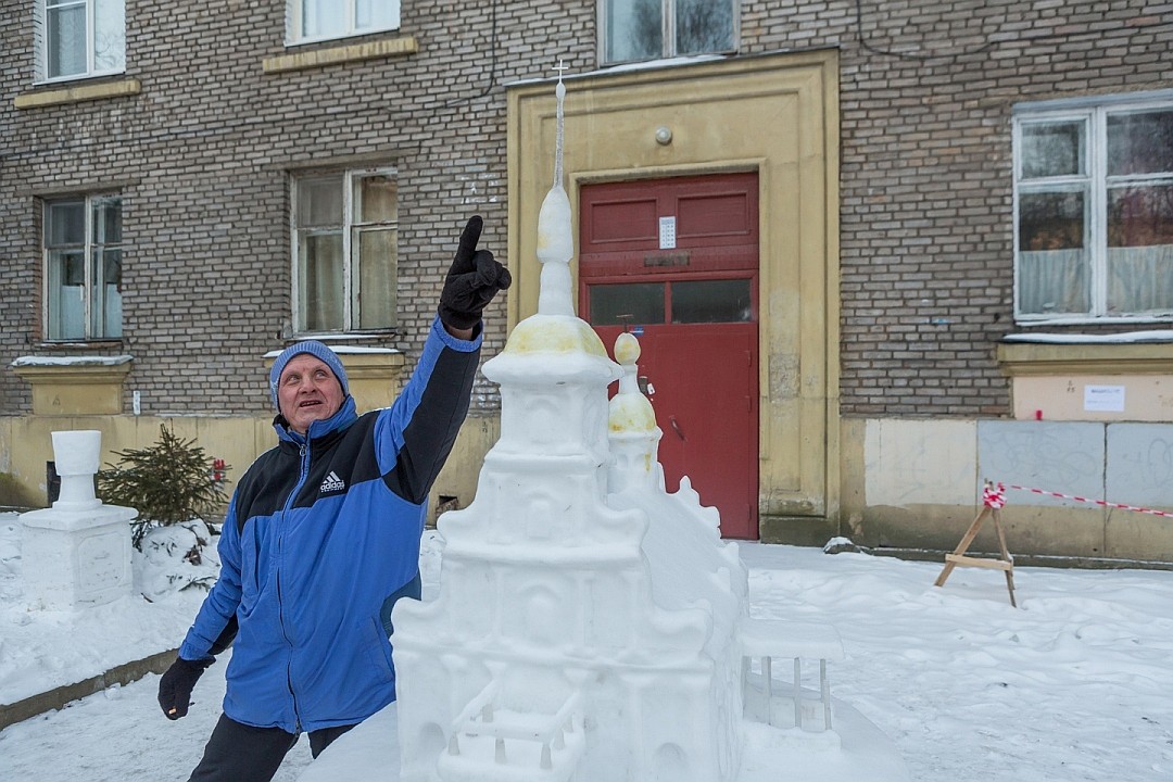 До этого Кузьмин лепил из снега копии яйца Фаберже, Петропавловский собор и Спас на крови.