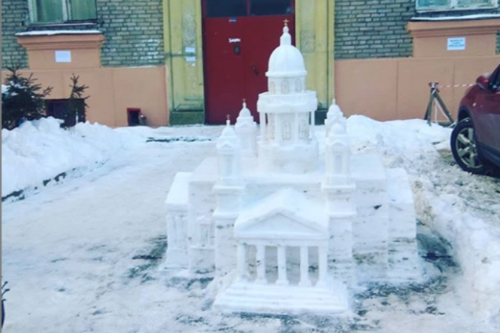 Петербургский пенсионер Владимир Кузьмин слепил копию Исаакиевского собора из снега, высота которой составляет больше 1 метра. Скульптуру он оставил во дворе своего дома на Ланском шоссе. Внимание на это обратил телеканал «Санкт-Петербург».
