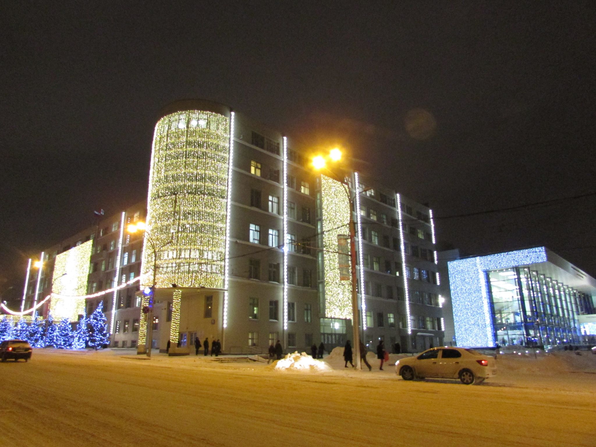 По иронии судьбы, областное правительство тоже находится в памятнике эпохи конструктивизма: на 4 ноября его укутали во что-то трёхцветно-патриотическое, а перед Новым годом и вовсе осветили всё здание Западно-Сибирского крайисполкома (а именно в нём сидит и губернатор, и "порешившие" дом-коммуну областные чиновники) аж на 3 миллиона рублей.