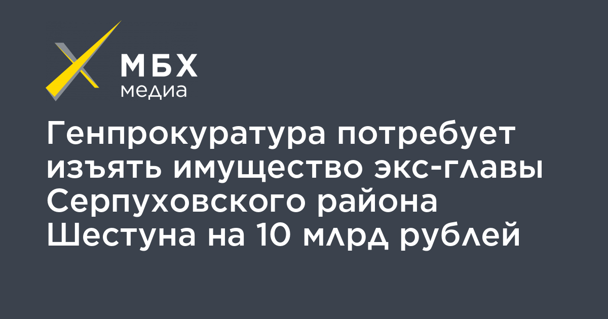 Генеральная прокуратура намерена изъять в пользу государства имущество почти на 10 млрд рублей, которое принадлежит экс-главе Серпуховского района Подмосковья Александру Шестуну, сообщил официальный представитель надзорного ведомства Александр Куренной, передает «Интерфакс».