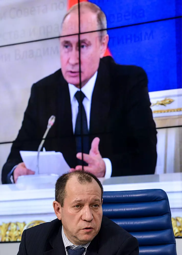 МРОО «Комитет против пыток» Игорь Каляпин на пресс-конференции Совета при президенте РФ по развитию гражданского общества и правам человека, 12 декабря 2018 года. Фото: Николай Галкин/ТАСС
