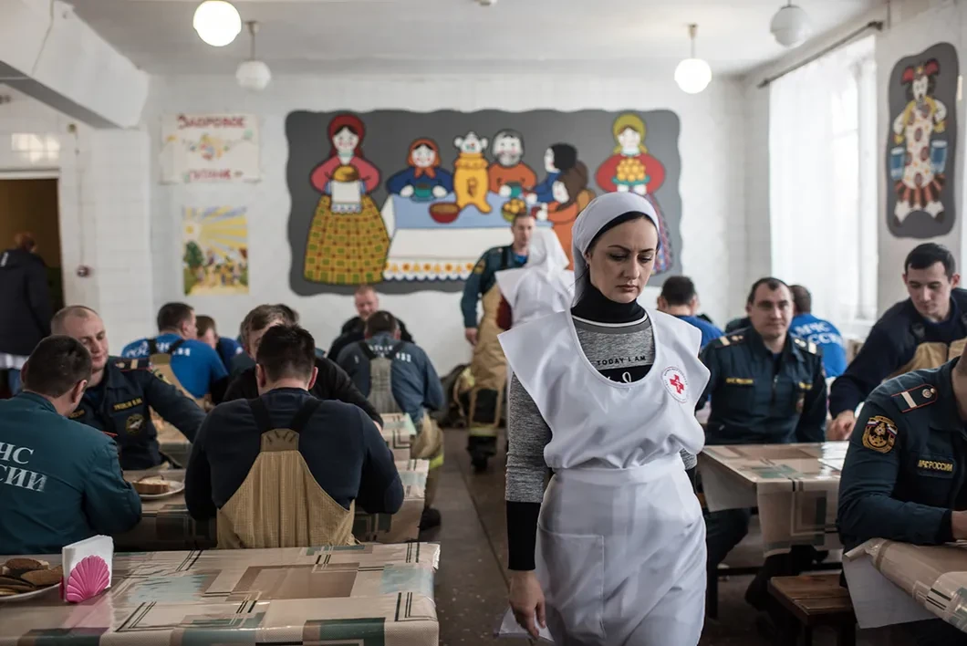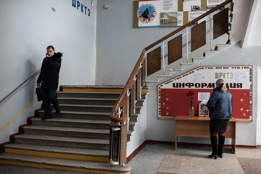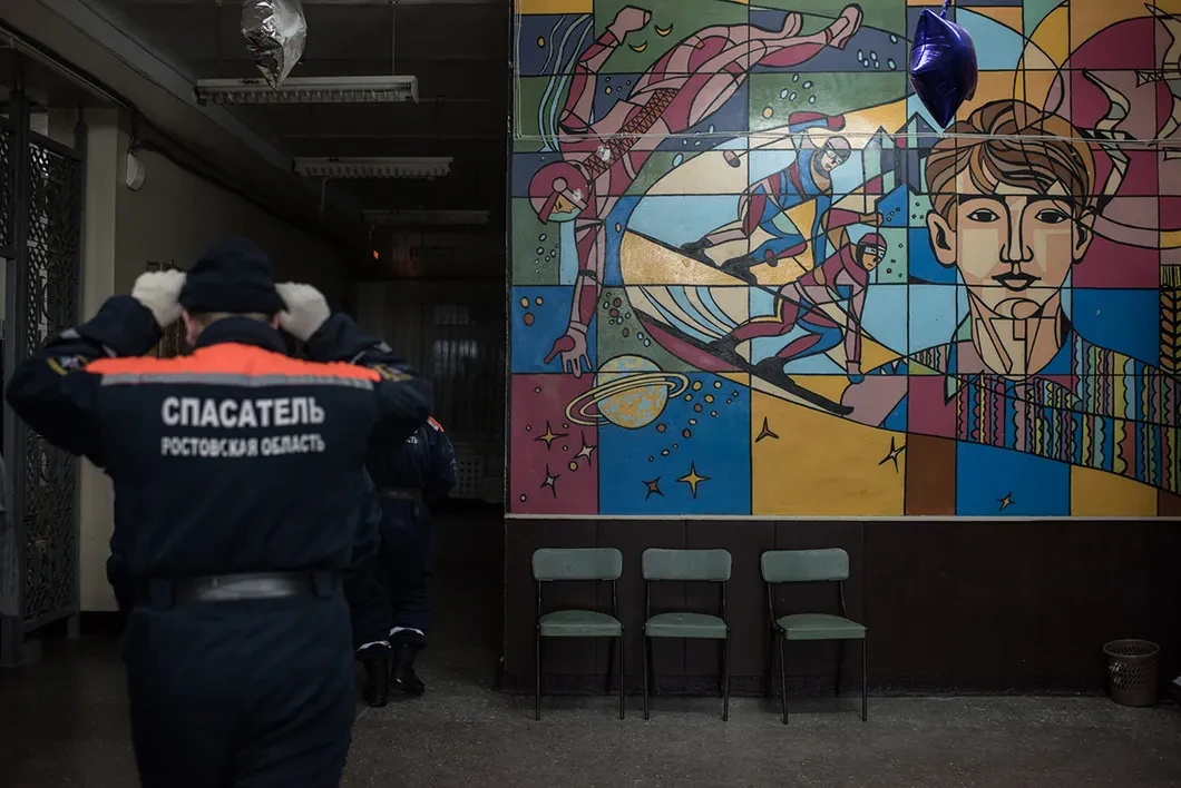 Школа № 23 украшена фресками в советском стиле, портретом молодого Путина и триколорами. Сюда сразу после взрыва доставили пострадавших. Здесь можно написать заявление на материальную помощь, заявление на размещение, получить вещи, поесть. Здесь работают психологи и Следственный комитет. С темнотой школа пустеет. В классе за партами, под таблицами с косинусами, сидят чиновники местной администрации и сводят списки пострадавших — для губернатора. Никто не хочет представляться — «мы крайними будем».