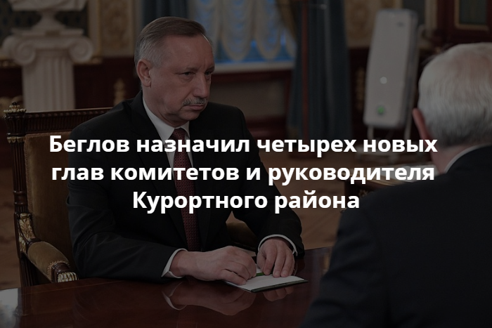 Врио губернатора Петербурга Александр Беглов произвел кадровые перестановки в комитетах Смольного и назначил нового главу Курортного района. Об этом сообщает пресс-служба администрации города.