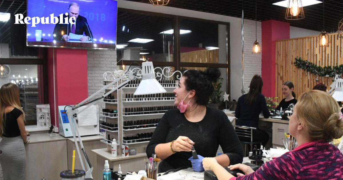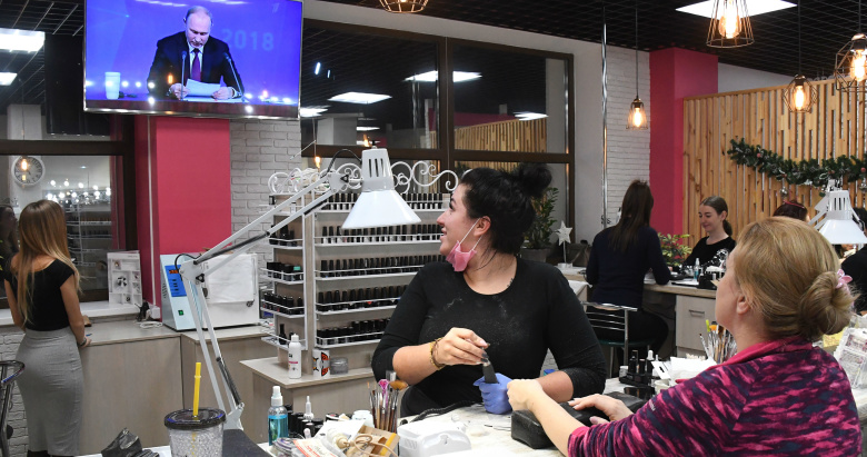 Прямая трансляция ежегодной пресс-конференции Владимира Путина в салоне красоты во Владивостоке. Фото: Виталий Аньков / РИА Новости