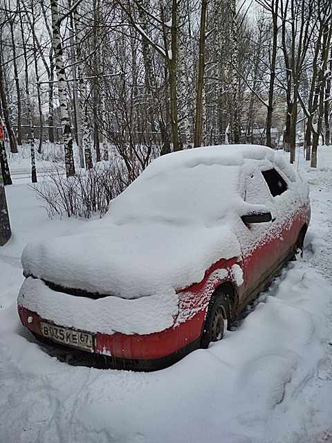 Стоит давно, больше месяца. Резина лысая, может зимой решили не ездить, а может — угнал кто «покататься», да бросил у нас во дворе.