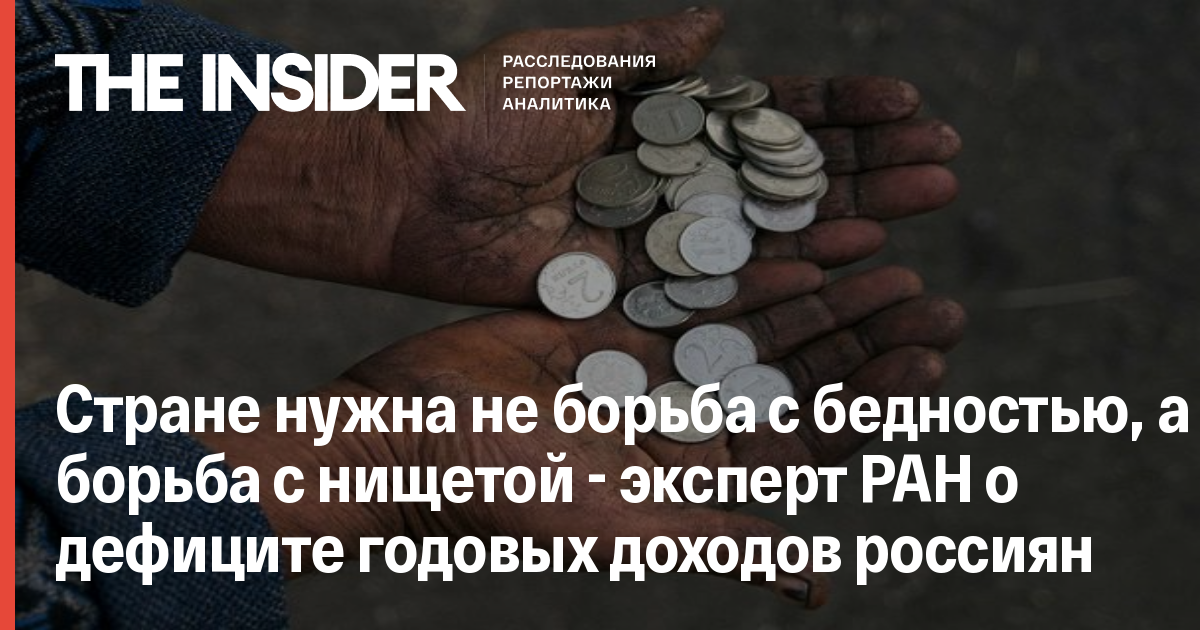 Стране нужна не борьба с бедностью, а борьба с нищетой - эксперт РАН о дефиците годовых доходов россиян