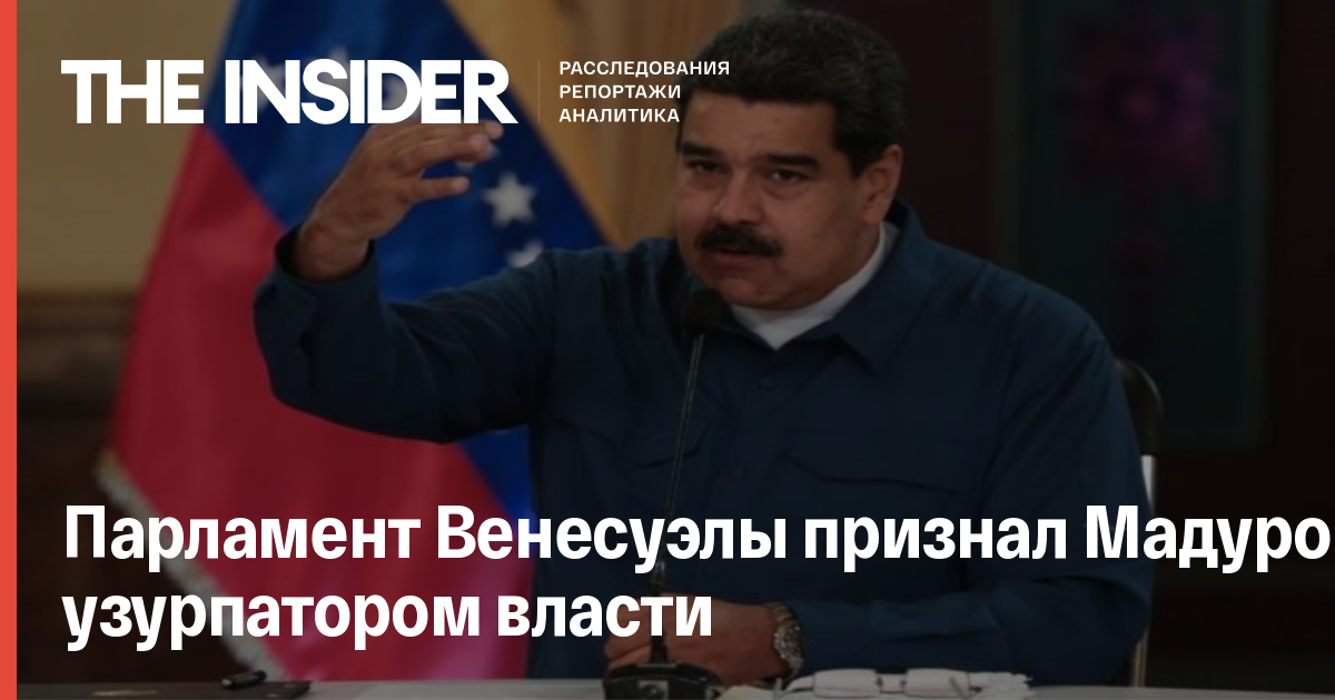 Национальная ассамблея Венесуэлы приняла заявление, в котором Николас Мадуро объявлен узурпатором власти, сообщает портал Nacional. После этого все действия и решения исполнительной власти должны быть признаны недействительными.