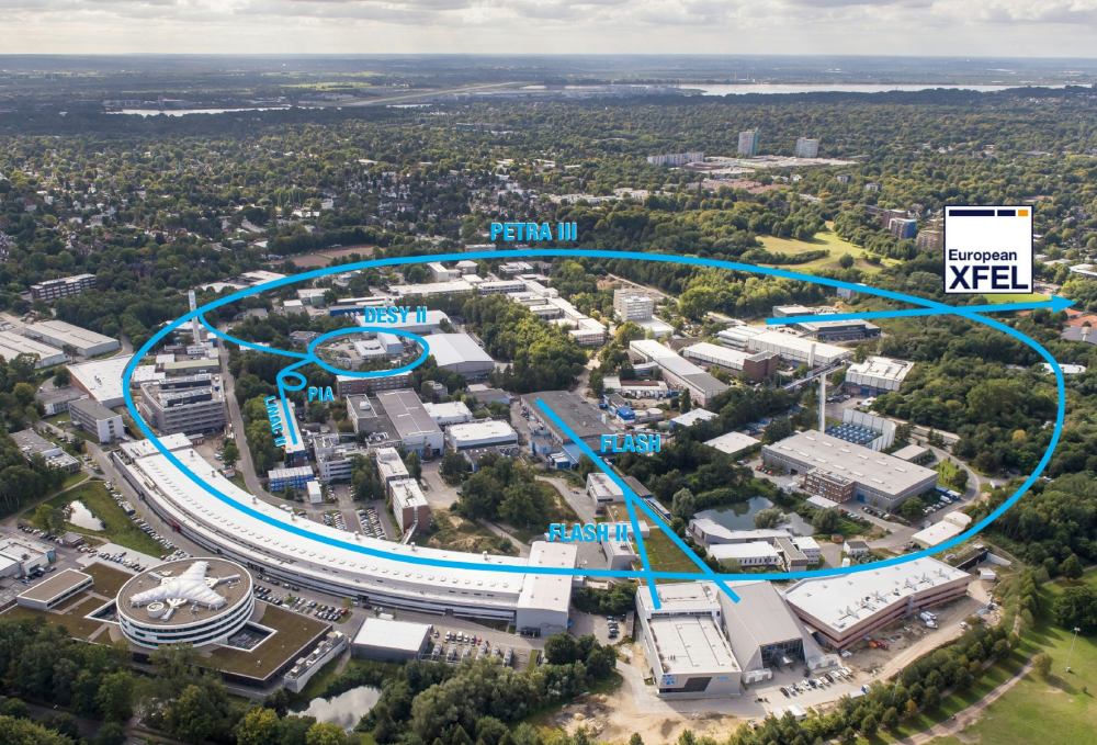 Для проведения экспериментов на территории гамбургского кампуса построено несколько ускорителей. Важнейшие из них — PETRA III (ускоритель и накопительное кольцо, выдающие излучение мощностью 6 ГэВ) и European XFEL (линейный ускоритель длиной более 3 км, который генерирует интенсивные вспышки рентгеновского излучения продолжительностью не более 100 фемтосекунд и длиной волны от 0,05 до 6 нм).
