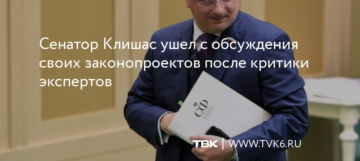 Сенатор Клишас ушел с обсуждения своих законопроектов после критики экспертов