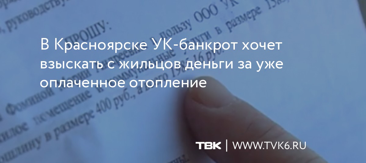 В Красноярске УК-банкрот хочет взыскать с жильцов деньги за уже оплаченное отопление
