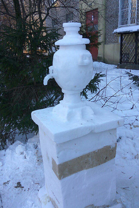 Петербуржец Владимир Кузьмин с конца 2010 года лепит снежные скульптуры: он сделал копии Петропавловского и Исаакиевского соборов, яйца Фаберже, а также множество снежных замков, храмов и ваз. Пенсионер выставляет скульптуры в своем дворе у «Черной речки» — с ними фотографируются местные и прохожие.