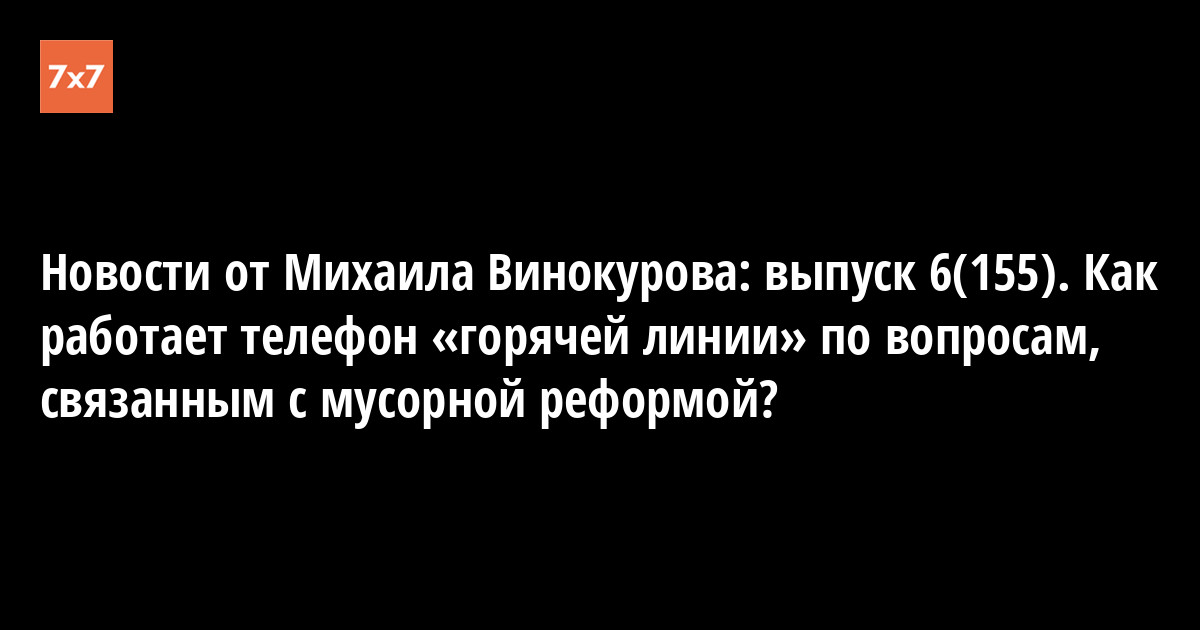 Новости от Михаила Винокурова: выпуск 6(155). Как работает телефон «горячей линии» по вопросам, связанным с мусорной реформой?