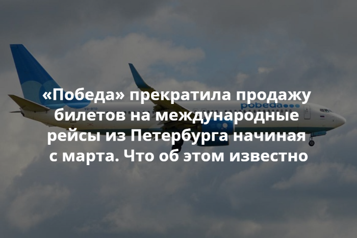 «Ведомости» со ссылкой на источник, близкий к «Победе», сообщают, что лоукостер не только прекращает продажу билетов начиная с марта, но и закроет сами международные рейсы из Петербурга. Официально в компании этого пока не подтвердили, но уже разослали купившим билеты в Лондон пассажирам сообщение об отмене рейсов с 13 марта — они смогут вернуть деньги за билеты.