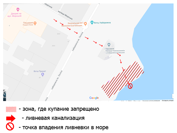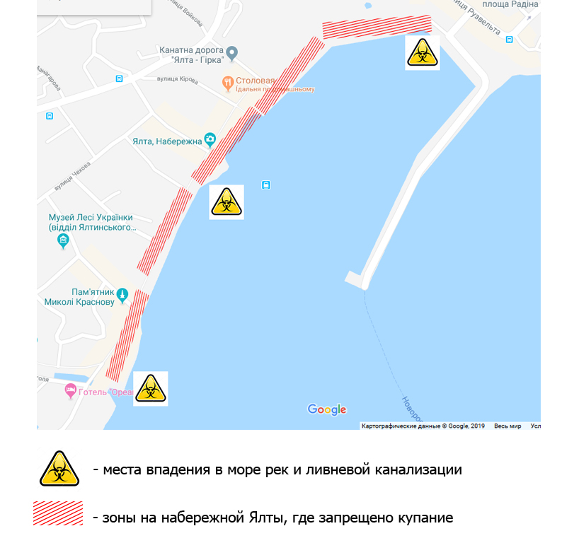 Вместе с тем причал № 9 – не единственный участок на набережной Ялты, где купаться не рекомендуется. Все эти места мы обозначили на карте.