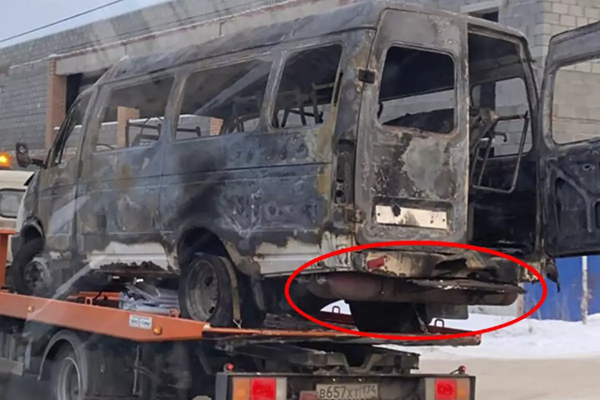 Особое внимание 74.ru обращает на фотографию сгоревшей маршрутки: газовый баллон у «Газели» остался целым.