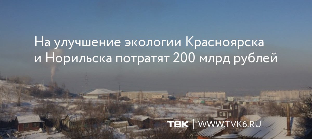 Норильск и Красноярск участвуют в федеральном проекте «Чистый воздух» национального проекта «Экология». Согласно правовому документу, на улучшение экологической ситуации в Красноярске потратят 68,69 млрд руб.