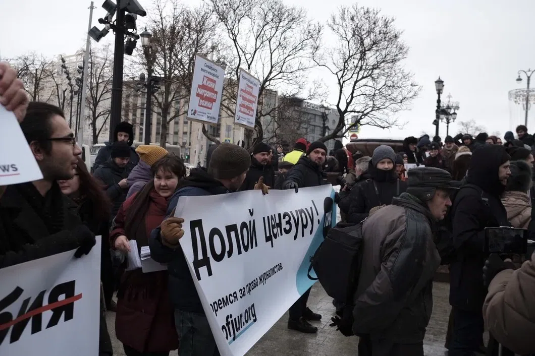 Как передает корреспондент «Новой газеты», в акции участвуют около 200 человек. На рамках полицейские проверяли их плакаты.