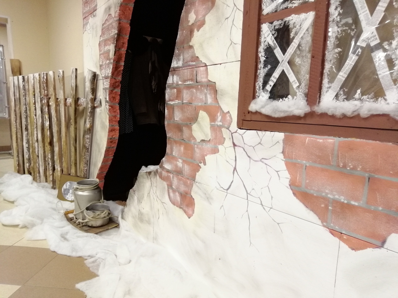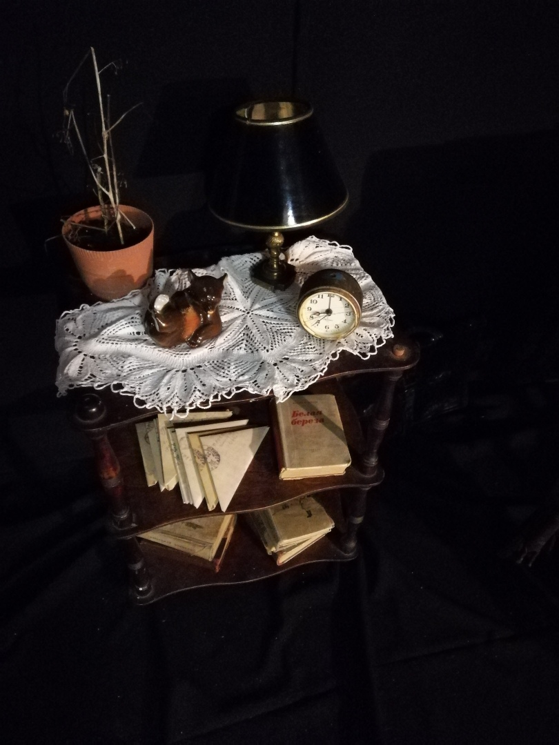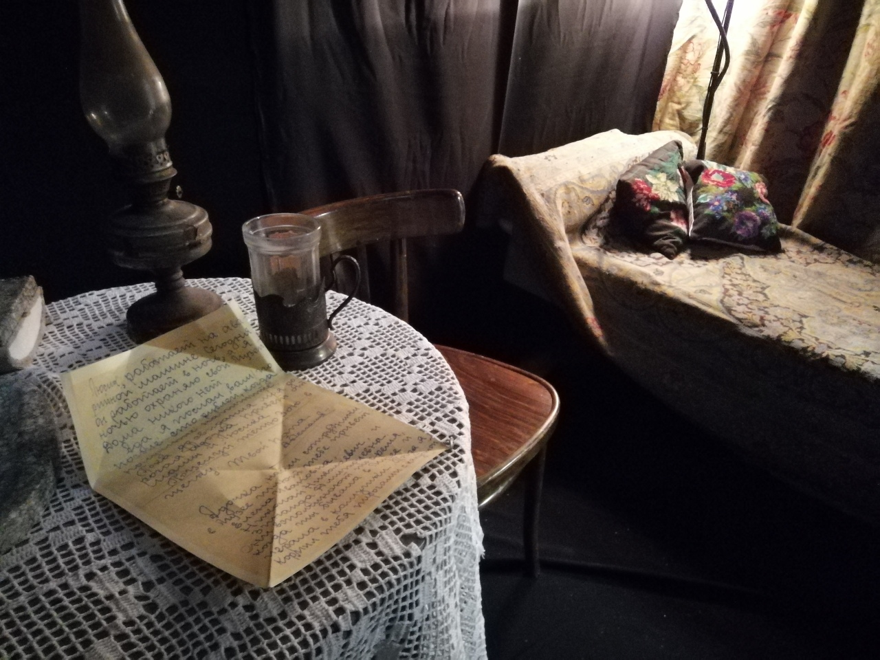 Инсталляция представляет собой квартиру жителей блокадного города. В ней воссоздан интерьер комнаты учительницы и военного, живших и работавших в осажденном городе.