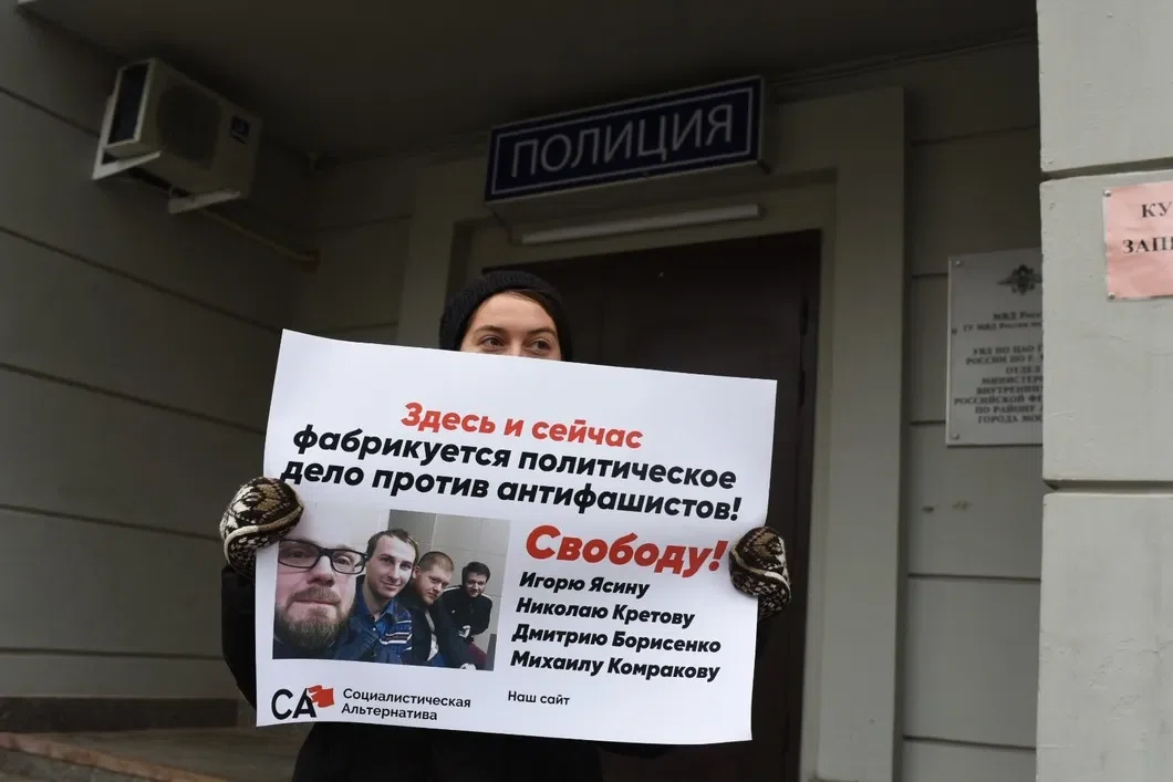Напомним, на шествии в память убитых 10 лет назад адвоката Станислава Маркелова и журналистки «Новой газеты» Анастасии Бабуровой в Москве были задержаны четыре человека. Игорю Ясину, Николаю Кретову, Дмитрию Борисенко и Михаилу Комракову вменяют обвинения по ч.1 ст. 19.3 КоАП (неповиновение законному требованию сотрудника полиции), Кретову – также по ч.5 ст. 20.2 КоАП (нарушение участником публичного мероприятия установленного порядка его проведения).