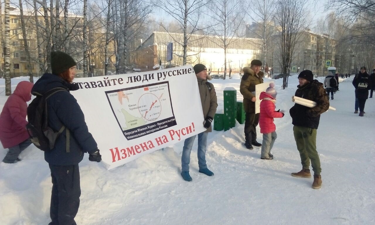 Попытка нынешних властей РФ и персонально президента Путина передать часть Курильских островов Японии должна быть классифицирована как минимум — ИЗМЕНА РОДИНЕ, именно с таким заявлением выступили сегодня национал-патриоты, собравшиеся в парке имени Мичурина в городе Сыктывкаре.